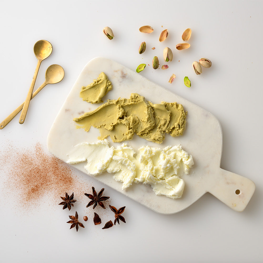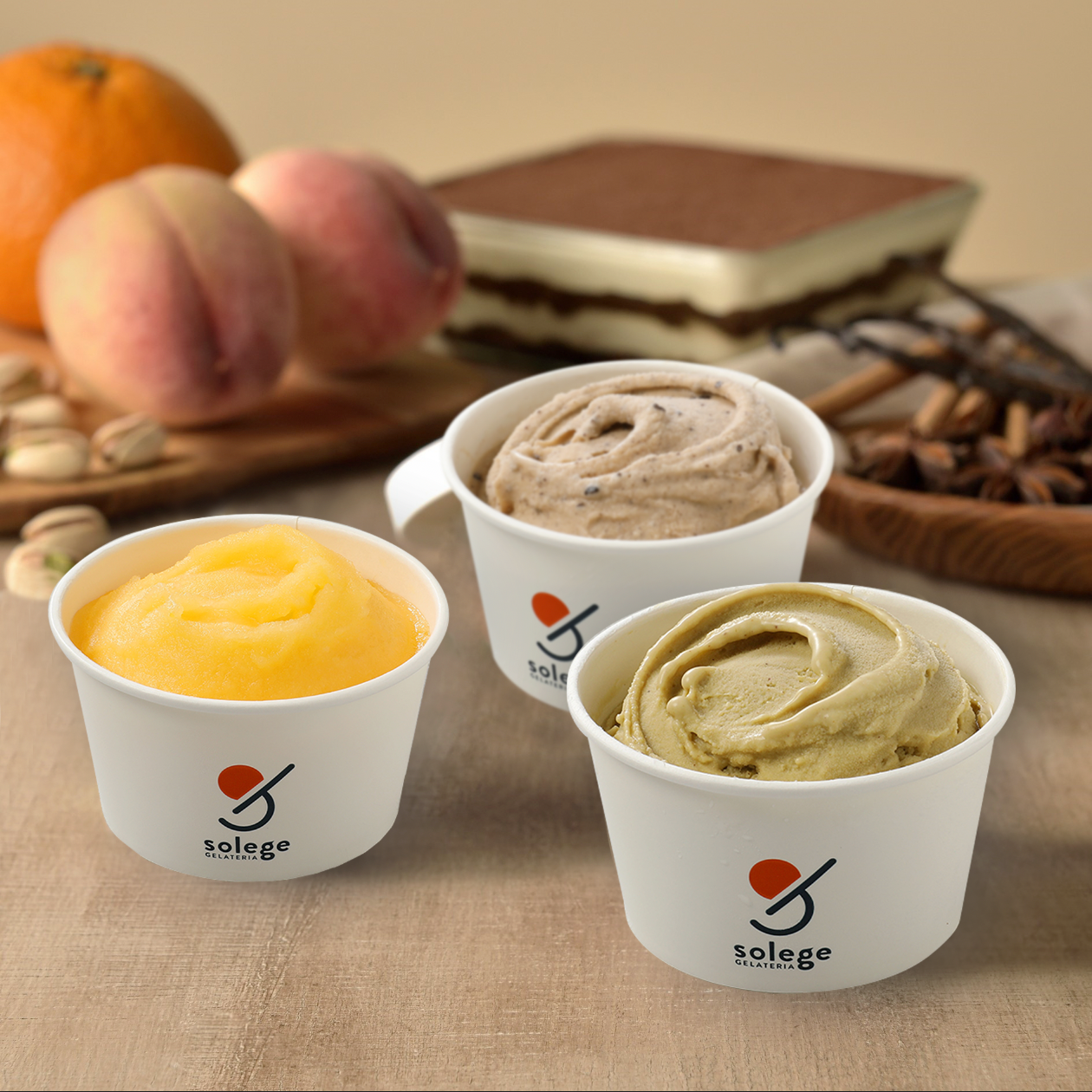 solegeならではの個性的なフレーバーを織り交ぜ、店舗でもなかなかお目にかかれないフレーバーを集めました。ピスタチオは作るとすぐに売り切れるレアフレーバーです。他店では味わえないオリジナルフレーバーや非加熱製法で作る生ソルベなど、ここでしか味わえないジェラートをお楽しみください。